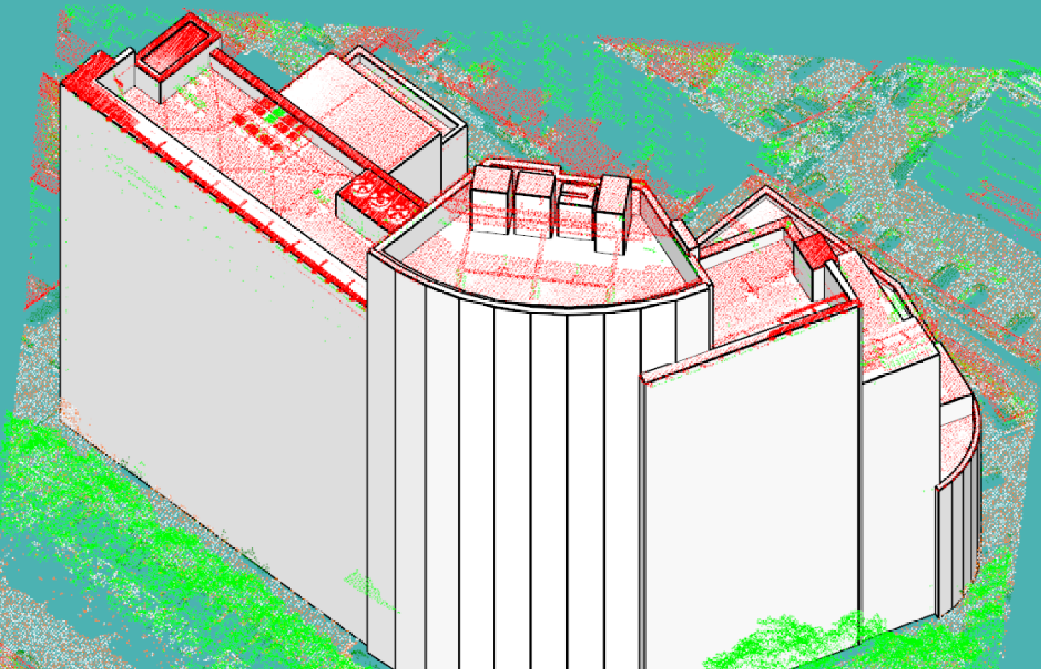 該項目我們采用了自主研發的AIMS航空集成多傳感器航攝儀,可一次性獲取激光點云、傾斜三維、高光譜等多模態數據。通過AIMS獲取的每平米50個點高密度激光點云直接生成白模,避免了冗長的數據處理過程、節約了飛行成本;DEM與白模基于同一套數據,與地形更為貼合,效率大幅度提升,包含的建筑位置、高度、形狀等信息為三維數據的分析與處理提供了關鍵數據。在此基礎上,我們對一般房屋、帶屋脊線房屋及多平面復雜房屋進行了精細化處理,建筑輪廓干凈,屋頂結構清晰可辨。