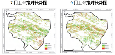 利用大幅寬、多譜段、多分辨率、高時效性的衛星影像,根據不同生長期內綠色植物對光譜的反射特性,結合作物物候期信息等,監測作物長勢,在作物收獲期前提供作物生長曲線,反映作物生長狀況。