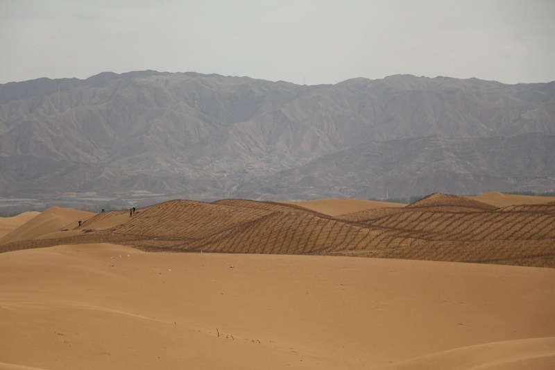包蘭鐵路是中國第一條沙漠鐵路,在寧夏中衛境內六次穿越沙漠,其中沙坡頭坡度最大,風沙最猛烈。為了保證鐵路暢通,避免線路被沙風埋沒,通過“麥草方格”固沙法,讓人類第一次以勝利者的姿態站在了流沙面前,讓金色沙海翻起了綠色波浪。