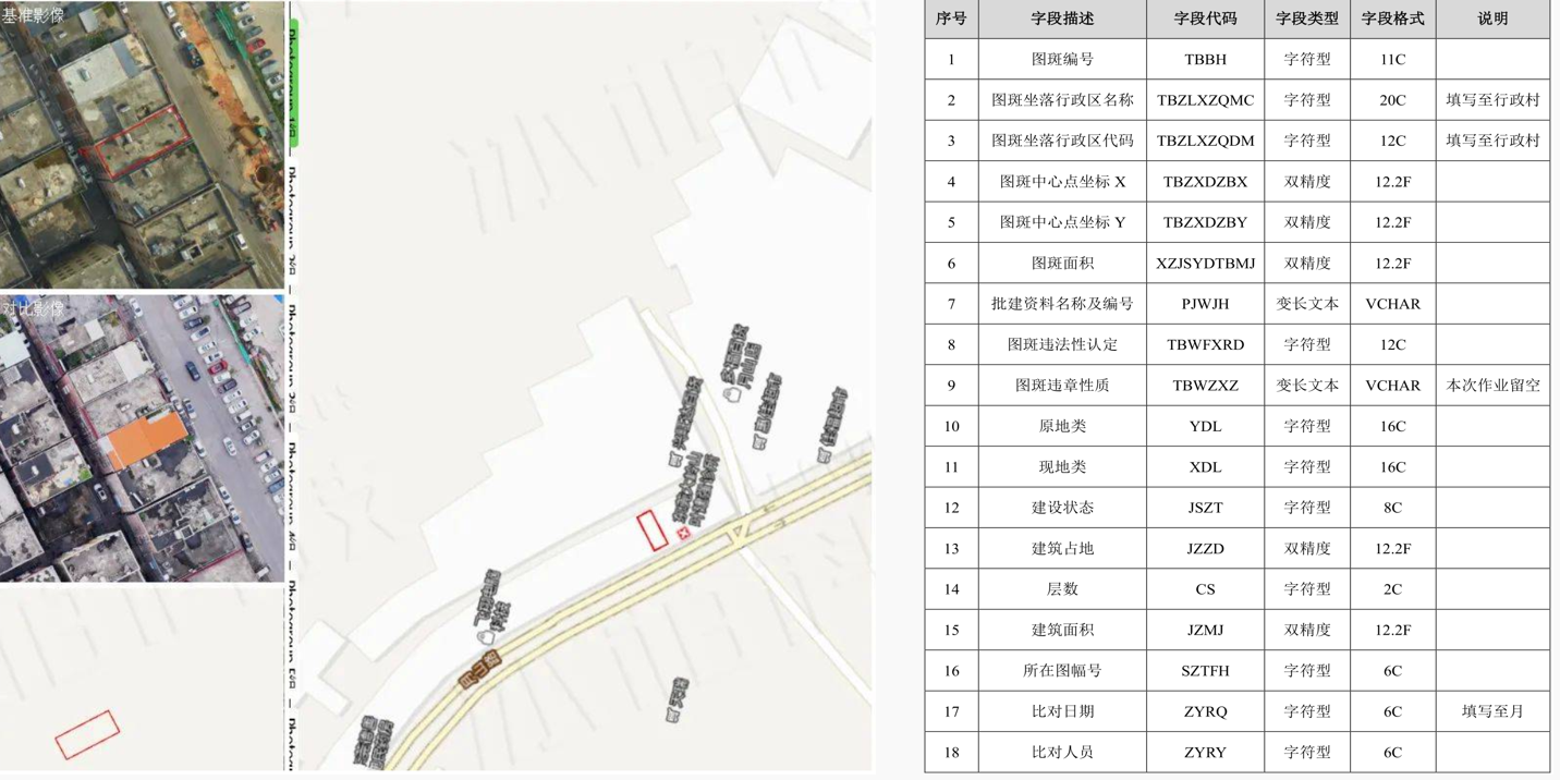 根據自然資源部門提供的土地利用現狀 、 永久基本農田現狀 、 耕地現狀等土地規劃數據,通過時空大數據平臺進行圖斑判讀 、 分析和篩選 , 形成疑似 “ 兩違 ” 圖斑。