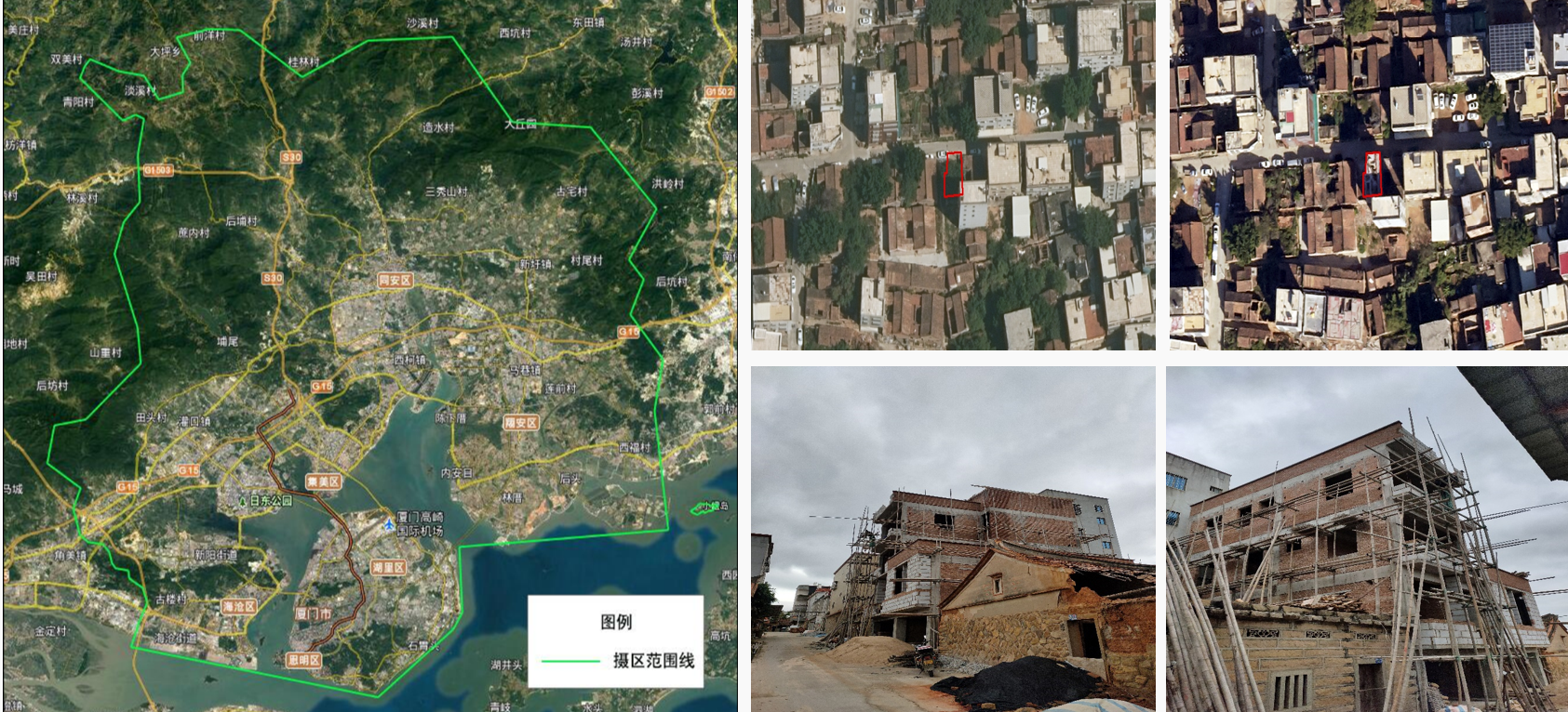 廈門市位于福建省東南部沿海,下轄思明、湖里、海滄、集美、同安、翔安6 個區。廈門市由廈門島、鼓浪嶼以及大陸九龍江北岸沿海部分組成,面積約1800平方公里。識別成果1.2萬個圖斑,比對后4000個圖斑。