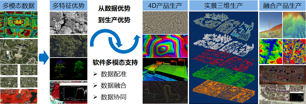 地理信息資源是重要的基礎性、戰略性信息資源,航空攝影測量是地理信息資源建設的主要手段之一。項目研究前,我國航空遙感數據采集仍以單模態、多次采集的模式為主,不僅成本高、周期長,不同模態的數據之間時相不一致,后期融合、處理和應用難度大,難以滿足新型基礎測繪、實景三維中國、智慧城市、森林資源一張圖、數字流域等領域的復合型、低成本、快速更新的需求。