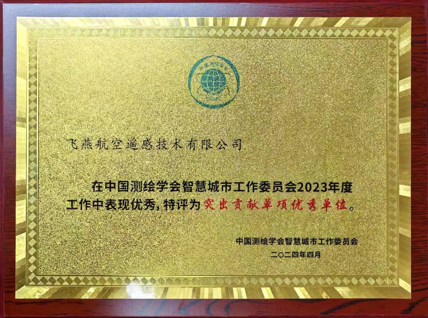 會議舉行了降重的表彰儀式,飛燕遙感作為中國測繪學會智慧城市工作委員會委員單位,在2023年度工作表現(xiàn)優(yōu)秀,并評為“突出貢獻單項優(yōu)秀單位”。