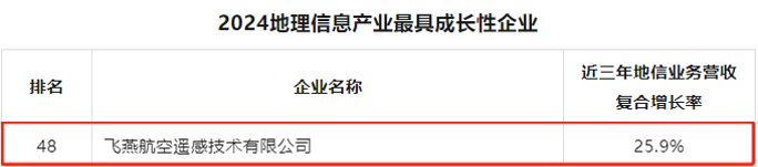 近日,中國地理信息產業協會公布2024地理信息產業最具成長性企業榜單,飛燕航空遙感技術有限公司(以下簡稱“飛燕遙感”)憑借卓越的技術創新能力和強勁的市場表現登榜。
