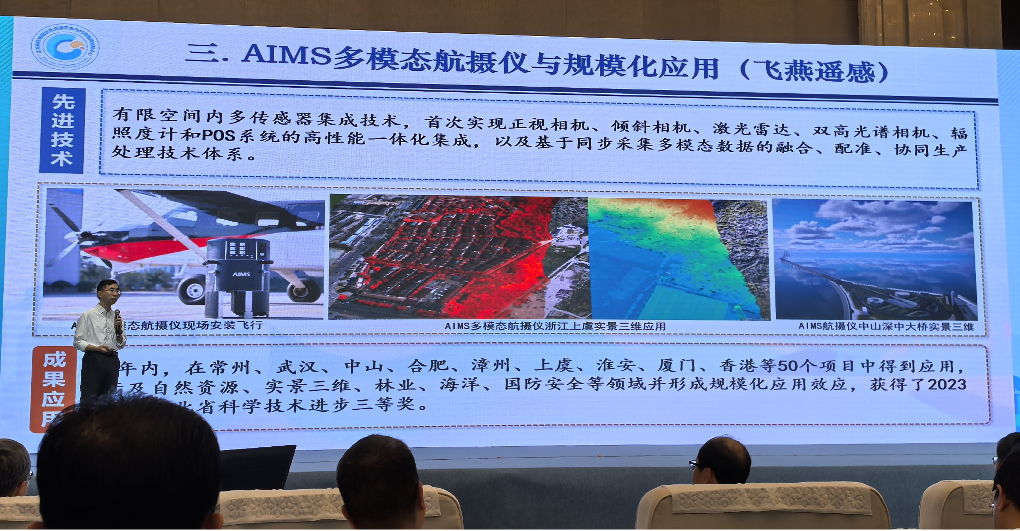 會(huì)上,多項(xiàng)地理信息協(xié)同創(chuàng)新代表性成果集中發(fā)布,省地理信息產(chǎn)業(yè)研究院副院長(zhǎng)周良辰上臺(tái)發(fā)布最新成果。其中,飛燕遙感的AIMS多模態(tài)航攝儀的研制與規(guī)?;瘧?yīng)用關(guān)鍵技術(shù)把數(shù)據(jù)要素作為贏在未來(lái)的革新力量。能夠一次性獲取多模異構(gòu)、時(shí)相統(tǒng)一的航空遙感數(shù)據(jù),實(shí)現(xiàn)地物全要素精細(xì)感知優(yōu)勢(shì)。利用多模態(tài)數(shù)據(jù)協(xié)同提升處理、解譯和應(yīng)用的自動(dòng)化、智能化水平,形成特征豐富、關(guān)聯(lián)性強(qiáng)的系列數(shù)據(jù)產(chǎn)品,助力實(shí)景三維建設(shè)。