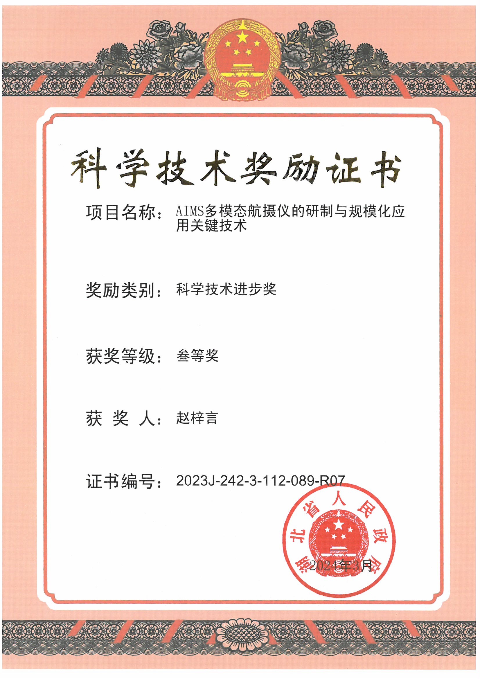 2023年度湖北省科學技術進步獎三等獎