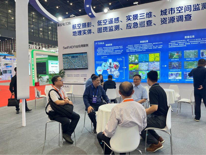 基于實景三維,整合疊加經濟社會和自然資源各個要素,可以促進各類資源在時空上更加精準有效匹配。飛燕遙感自主研發的Swift4D產品體系,匯聚地理空間數據、物聯感知數據、管理業務數據等多源數據,能夠實現在國土資源調查、水利、電力、礦產、環保及應急等多個行業的融合創新應用。展臺現場人頭攢動,并就相關行業需求、新技術、新應用進行深入探討。