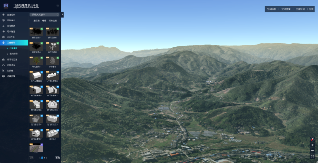 支持DOMDEM、傾斜mesh、點云、BIM模型、衛星遙感高光譜等多源數據服務管理、展示及交互式瀏覽。