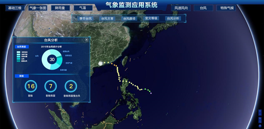 通過三維GIS技術,結合氣象數據、區域地形、河網等信息,構建氣象監測預警系統。基于氣象因素動態分析,科學預測區域內水域、水利受影響范圍及程度。針對極端天氣,例如臺風,系統會錄入臺風的運動軌跡與時間信息,預測臺風登陸的時間地點,適時發出預警信息。