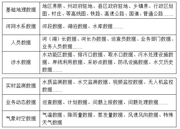 數據層是平臺需要的數據類型,主要包括基礎地理數據、河網水系數據、人員數據、涉水數據、實時監測數據、業務動態數據、氣象時空數據等。