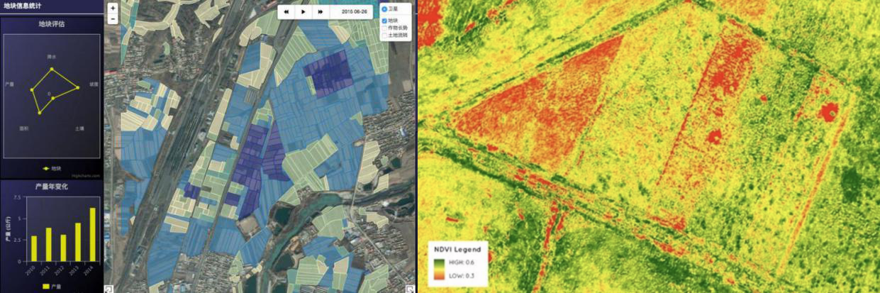 真彩色衛星影像為主,高光譜影像和航空影像為輔確認農作物護理、生長情況,農作物產量評估。