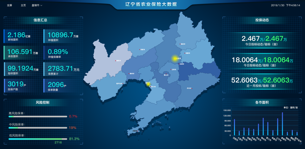 業務監控系統,通過大數據監控平臺,對公司業務進行全流程的實時監控及統計分析,相關的管理領導可以及時的查看業務分布、進展及詳細信息。公司總部可以實時了解到全區域農保業務分布情況、業務進展情況,了解各個地區的業務數、理賠率,各地區的排名情況,突發事件監控。各個分區首頁可以看到該區域的區域信息匯總、農保分布情況、農保業務數量、業務人員工作開展情況,突發事件處理響應進展。業務人員可以看到相關的業務受理情況、業務數量、業務排名以及突發事件預警。