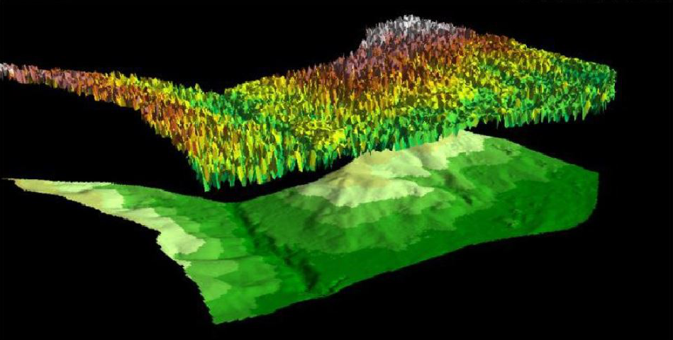 Lidar技術(shù)通過主動遙感方式,具有一定的地表物體穿透力,通過載人飛機搭載Riegl 1560i激光掃描儀對森林地區(qū)進行全波段、多波形的點云數(shù)據(jù)獲取,掃描儀所包含的飛思工業(yè)級相機可以同期獲取影像數(shù)據(jù),方便后期進行地物點云分類。可以更加精細地獲取森林三維空間結(jié)構(gòu)模型(如DCHM),再通過進一步定量分析,獲取森林蓄積量、冠層高度、胸徑、郁閉度等相關(guān)信息。可以大幅度減少人工調(diào)查工作量,提高森林資源調(diào)查的效率和精度。