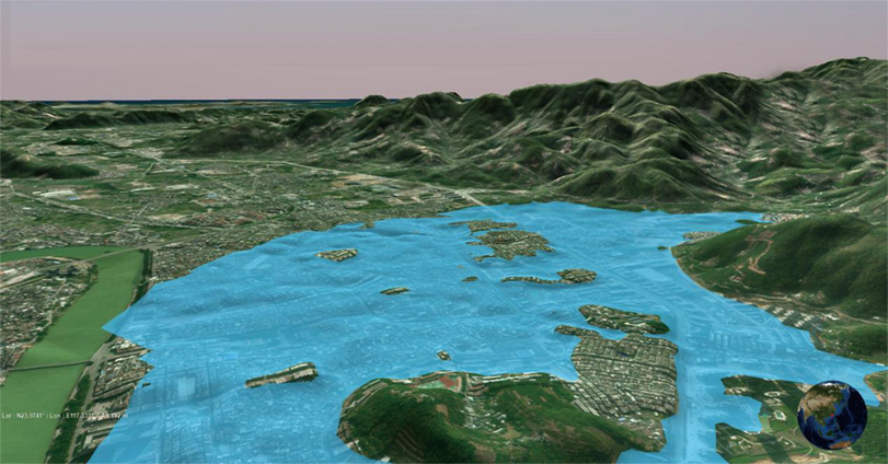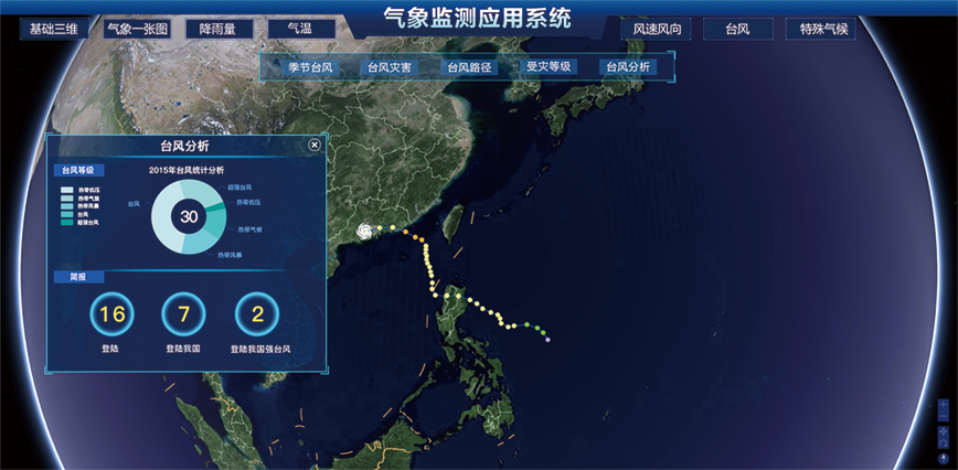 通過三維GIS技術,結合氣象部門發布的氣象數據、現有的區域內地形、河網等水文信息,構建水利氣象監測系統。基于氣象因素動態分析,科學預測區域內水域、水利造成的影響范圍及影響程度。針對極端天氣,例如臺風,系統會錄入臺風的運動軌跡與時間信息,預測臺風登陸的時間地點,適時發出預警信息。